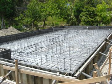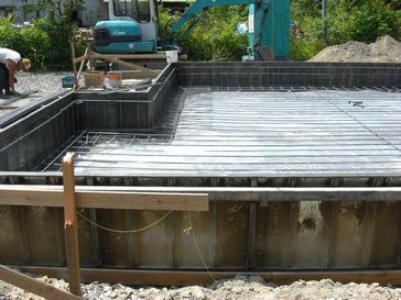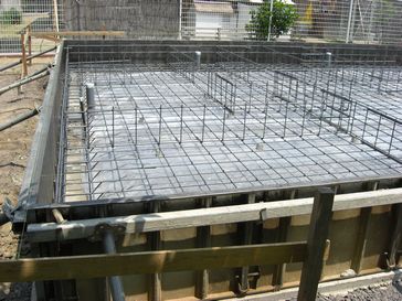 立ち上がり部分の型枠がすでに設置されはじめていて、